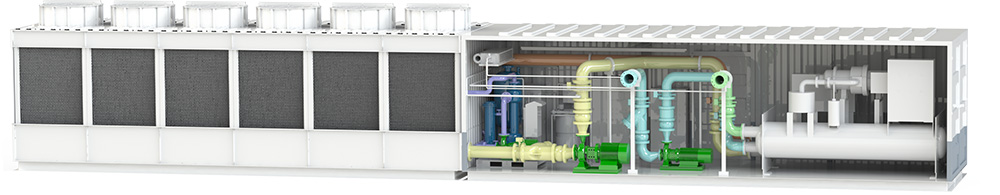 According to changes in customer needs, integrated cooling stations can be equipped with high-efficiency screw chillers, centrifugal chillers, or magnetic levitation chillers to meet different usage scenarios and achieve differentiated requirements for high efficiency, energy saving, and stable operation.